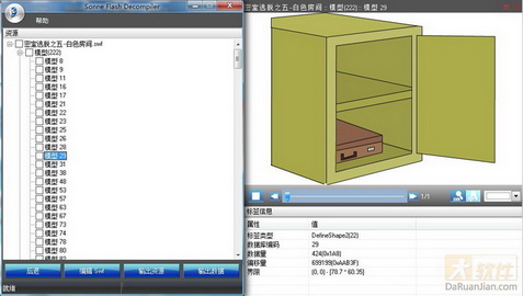 還可以對 Flash 影片動作(Action)進行解析,清楚的顯示其動作的代碼,讓您對 Flash 動畫的構造