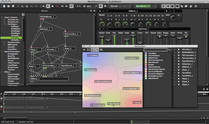 套完整的音樂編輯與執行系統。AudioMulch內含了許多的聲音合成及處理模組,也可