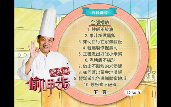 阿基師偷呷步-五穀豐收(米飯雜糧) 阿基師的煮菜妙招 國語發音繁體中文字幕版(DVD一片裝)