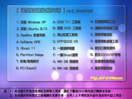 1.) 所有打算使用本光碟/系統/ISO 的朋友,請務必先看光碟內「使用說明及聲明」文件