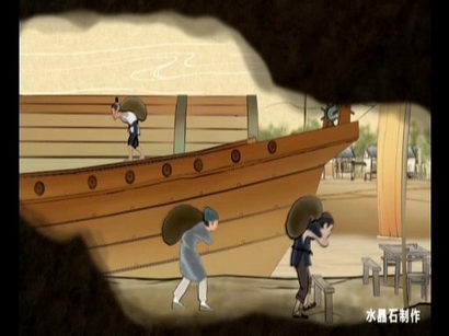 且所有景物躍然紙上,水流人動,百貨紛陳,河上縴夫叫號,船舶亦搖曳行進,
