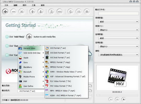 Ultra MKV Converter 可以將 MKV 轉換成數種不同的格式,除了基本的 AVI、WMV、VCD、