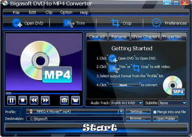 Bigasoft DVD to MP4 Converter 是一款功能強大的DVD光碟的影片直接轉換